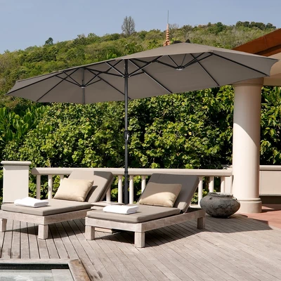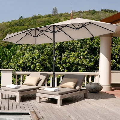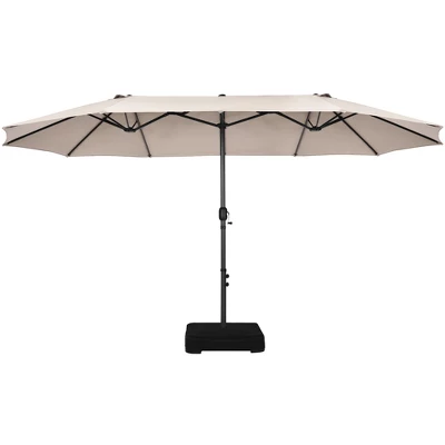 - Double-Sided Design Offers Ultra-Large Shade: This 15ft twin patio umbrella with air-vented design offers a large shading coverage, protecting you from harmful sunny lights & allowing you to enjoy breeze. Made of fade-resistant and sun-protective fabric, the umbrella is durable for outdoor long-term use.