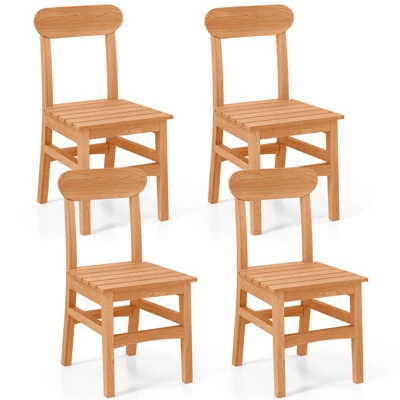 - Elegant Natural Look: Enhance the aesthetic of your outdoor space with this dining chair’s natural teak color and attractive slatted design. The authentic wood grain seamlessly blends with your outdoor decoration.