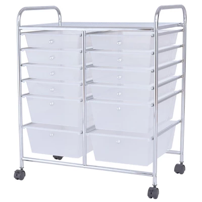 12 Drawer Rolling Storage Cart,which is ideal for getting your your work and life space easily in your office, home, school, garage or just about anywhere organization is needed,this 12 drawer rolling cart is sturdy and serve you for a long time. Four universal wheels will help you move it easily.