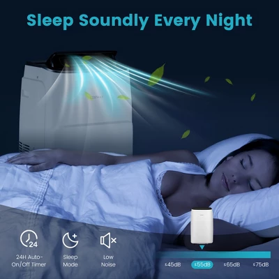 - Sleep Soundly Every Night: The sleep mode and low noise operation (≤55dB) can promise you a peaceful and sweet sleep. In addition, the portable air conditioner features a 24H auto-on/off timer for you to enjoy preset comfort.