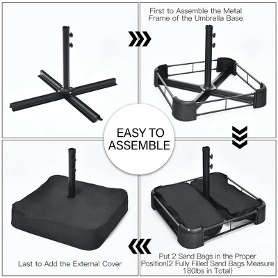 - Extra Stable Umbrella Base Included: This large sun umbrella comes with a sturdy and durable umbrella base bracket, so you don’t need to buy it separately. The weighted base consists of a metal frame and 2 sandbags (no sand). And each sandbag can be filled with 90 pounds of sand to improve the stability of the twin umbrella. Also, the assembly is easy to finish following the instruction.