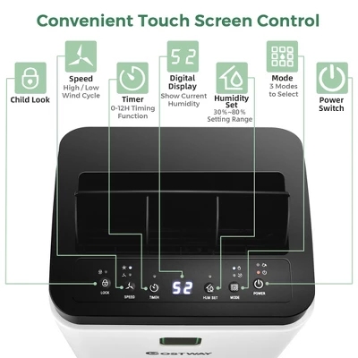 - Adjustable Airflow & Simple Operation: You can adjust the fan speed to the high or low level to achieve an expected dehumidification. And the 12-hour timing function allows you to set the auto-off time while sleeping or away from home. Digital display plus LED light shows current humidity more intuitively and the touch panel makes the operation easier.