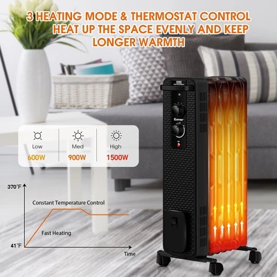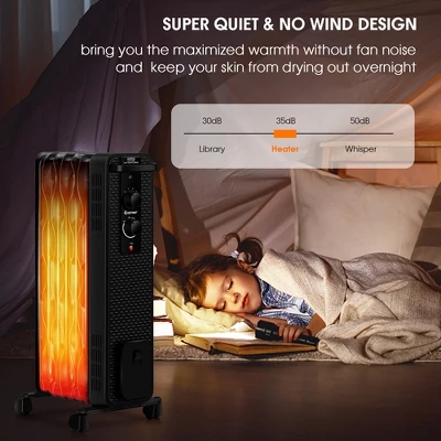 - Efficient Heating Performance: With 7 oil-filled heat sinks andpowerful tubular element heat system, our space heater instantly heats the internal oil and provides energy-efficient heating for your room and constant temperature in winter without producing unpleasant smoke or noise.