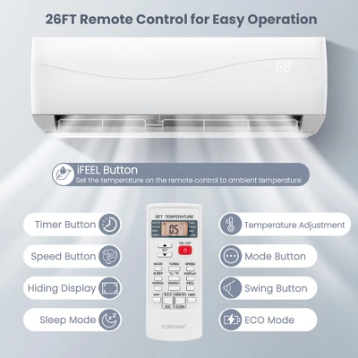 - 5 Modes for All-Year Comfort: This 18000 BTU split-system AC unit has 5 working modes for you to choose from: auto, cool, dry, heat and fan mode. In addition, this split air conditioner also comes with 4 available fan speeds (low/medium/high/auto), sleep mode, ECO mode, iFEEL & turbo function to meet various needs.