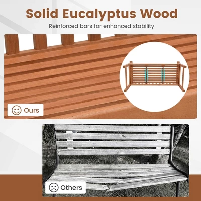 - 800 lbs Weight Capacity: Constructed of solid eucalyptus wood, this garden bench comes with strong weight capacity up to 800 lbs. And the reinforced bars under the seat make the force more evenly distributed.