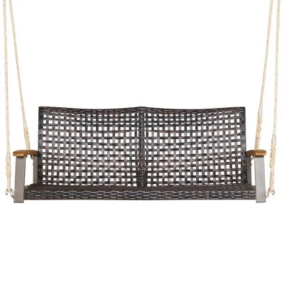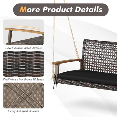 Come to enjoy your outdoor time with your beloved one swinging on our 2-seat rattan porch swing chair!