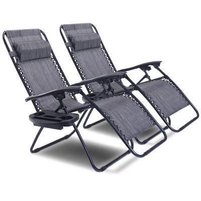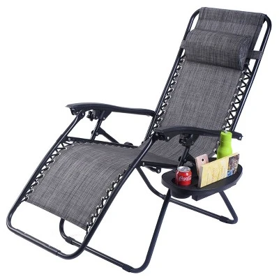 Zero Gravity Chairs, A Perfect Choice In The Beach, Yard, And In Your Home. Made Of Steel Frame, This Lounge Chair Is sturdy And Sturdy, Whose Max Weight Capacity Reach 300lbs. Bear Your Comfort In Mind, The Design Of Headrest Pillow Has An Elastic Band That Allows You To Easily Place The Pillow Where It Works Best For You And The Smooth Recline Function Easily Locks Into Your Desired Position By Flipping The Knobs On Both Sides Away From The User To Lock The Reclined Position In Place. A Cup And Magazine Holder Come With It, So You Can Enjoy Drinking Or Reading When You Lying On It. This Lounge Chair Is Good Choice For Your Relax, Relief, Sleep And Entertainment. Do Not Hesitate, Just Buy One!