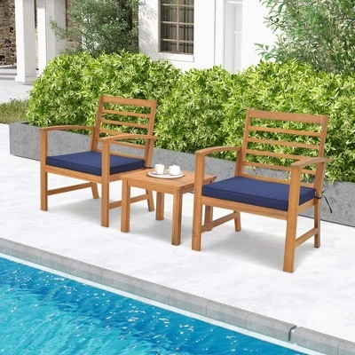 Immerse yourself in the blend of natural beauty and comfort with this 3-piece acacia wood patio set.