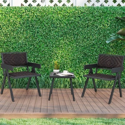 - Premium Rattan Craftsmanship: The seat and back of the patio set are crafted from premium mix brown PE rattan, which is anti-fading and sunproof for long-lasting use. The well-woven and appealing wicker also enhances the overall aesthetic.