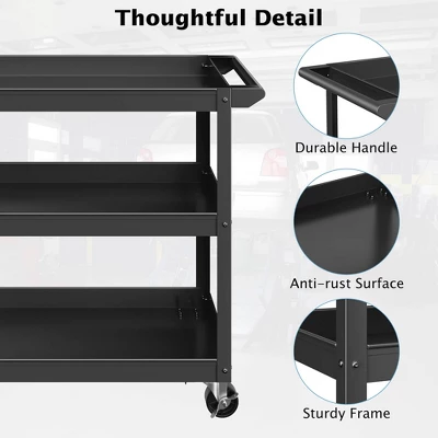 - Spacious Storage Design: Features 3 level large storage shelf including three open trays, this stable utility cart provides 132 lbs of load capacity each layer, which provides ample storage to storing more tools for easy access.