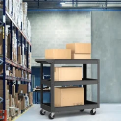 3-level of large storage shelf provides ample space for storing tools and supplies