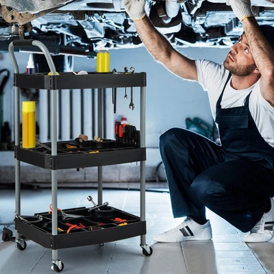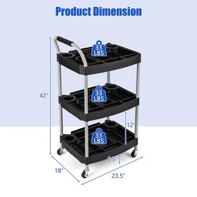 - Versatile Accessories Organizer: Efficiently organize your tools and accessories with this 3-tier rolling cart storage solution. Equipped with 6 bottle holders and multi-tool storage slots, this utility cart can keep tools, scissors, combs and bottles in place for easy access.