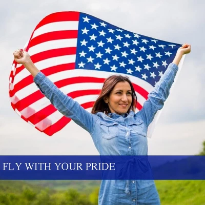 This is our 3’x5′(90x150cm) New Embroidered 50-Star USA Flag on a silky looking, using for outdoors or indoor,coming with strong hang grommets. It is great for improving the looks of your home or room and showing your UNITED STATES pride with this new flag!