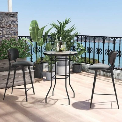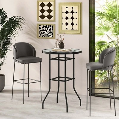 Upgrade your outdoor space with our stunning 38” tempered glass bistro table! Enjoy al fresco dining and drinks in style. Crafted with high-strength tempered glass and robust metal frame for durability, the bar table is designed for outdoor life. The well-made details, including protective silicon pads, firm bolt connection and non-slip foot pads, allow for longer service life and better experience. Versatile design looks amazing in any setting. Quick and easy assembly with step-by-step instructions. Don’t miss your chance to transform your patio or deck with this elegant bistro table. Get yours today and start creating unforgettable memories outdoors!
