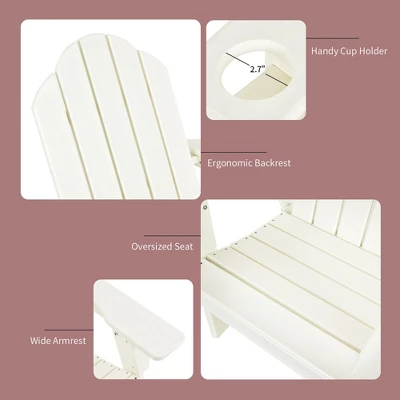 This Adirondack chairs with side table is both comfortable and convenient to use! Boasting the ergonomic backrest, wide armrests and oversized seat, the Adirondack chair is cozy to sit on. At the same time, the sturdy triangular structure supports 330 lbs for the whole family to use. As for convenience, the practical side table and built-in cup holder allow you to reach items easily. Furthermore, you do not need to spend too much time on staining or waterproofing because of the weather resistant HDPE material.