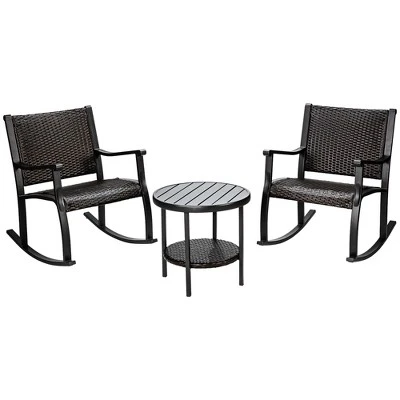 - Concise & Modern Style: Including 2 rocking chairs and 1 coffee table, this furniture set is designed in classical and concise style with dark color. This set can be widely used for outdoor patio, garden, lawn, balcony and pool side to be a perfect display of your home.