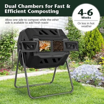 - Dual Chamber Design: This compost bin comes with dual chambers that allow one side to composting while the other side is available to add fresh waste, ensuring a continuous and fast composting process. And it would take about 4-6 weeks or less in hot weather to produce fertilizer.