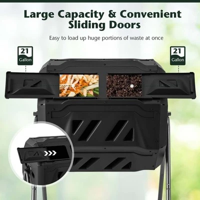 - Large Capacity & Convenient Sliding Doors: Each chamber features a generous capacity of 21 gallon, and there exist 2 large sliding doors, making it easy to load up huge portions of waste at once. Moreover, the tightly locking sliding doors could effectively prevent rodents, insects, and other pests from accessing the compost.