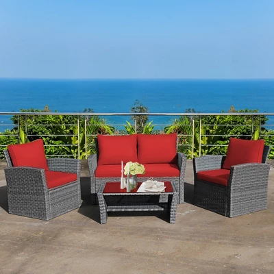 Enjoy your leisure time on the patio or balcony with this 4-piece rattan sectional sofa set!