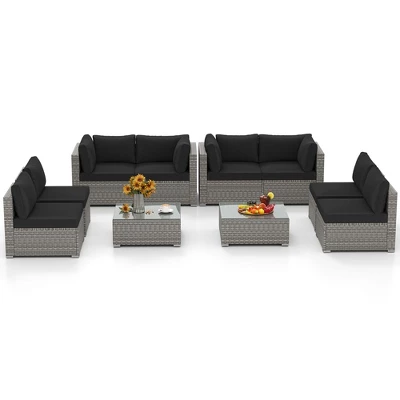 Rattan patio furniture set with a/2 coffee table and 4/8 comfortable chairs