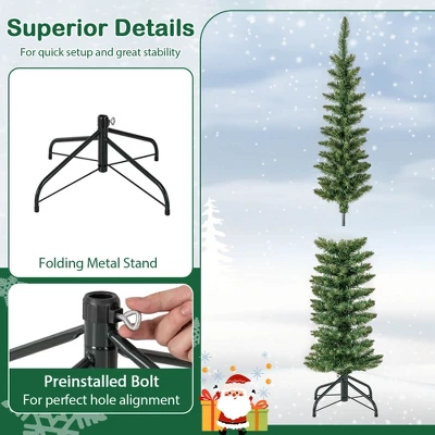 - Slim Pencil Shape: Designed to fit any space, the slim pencil-shaped Xmas tree offers the great versatility for wide use. Its elegant, slender profile allows you to bring the festive spirit into your home, office, shop, school, carnival, etc.