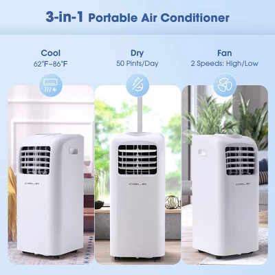 - 3-in-1 Portable Air Conditioner: Equipped with 3 modes (COOL, DRY and FAN), this portable AC unit can meet all your needs. The temperature is adjustable from 17-30℃(62-86℉) and the fan speed has 2 levels to choose: high/low. In addition, it can remove 50 pints of moisture per day to offer you a dry and comfortable living environment.