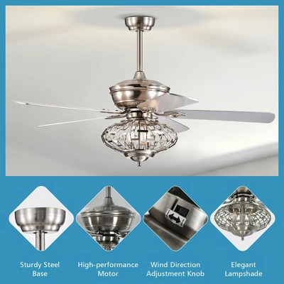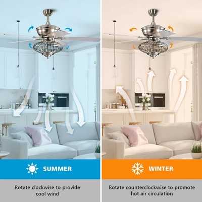 Add a sense of elegance and style to your living space with this 52” ceiling fan lamp, which is suitable for the farmhouse, bedroom, living room, kitchen and more. The powerful motor with reversible function allows the ceiling fan to rotate clockwise or counterclockwise according to the season. Besides, timer function with convenient remote control offers humanized using experience. Moreover, a short 5” down rod and longer 10” down rod are included for different installation options. And you can complete the assembly easily with clear instruction and necessary hardware.