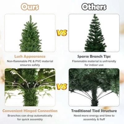 - Hinged Design for Simple Setup: The whole artificial Christmas tree is divided into 3 sections,meaning a simple setup and an easy storage. Together with a hinged design,all branches will automatically slide into place. All you need to do is further fluff each branch tip quickly by your hands.