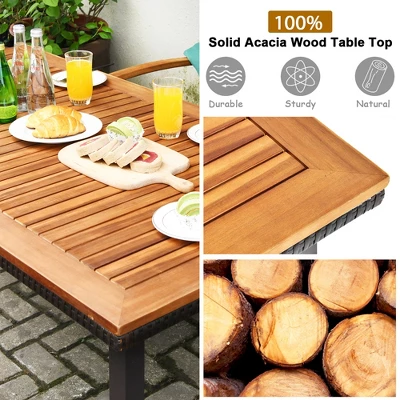 - Acacia Top Table with Umbrella Hole: Made from solid and natural acacia wood, the table top of this outdoor dining table not only offers spacious dining space, but also ensures great durability for long lasting use. In addition, the dining table is equipped with a 2” umbrella hole which is specially designed for blocking sunlight outdoors.
