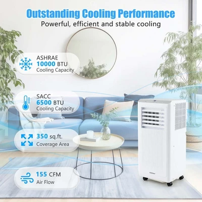 - Outstanding Cooling Performance: With an 10000 BTU cooling capacity (ASHRAE) and 155 CFM strong airflow, this portable AC can help you beat the heat, providing powerful, efficient and stable cooling for rooms up to 350 sq.ft. The 120° auto wide oscillation enhances air circulation, delivering cool air to every corner of your space.