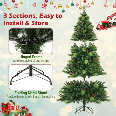 - Easy & Quick Setup: Specially hinged, its branch tips allow the auto expanding to reduce the setup time. Also, the Xmas tree has an upgraded metal stand with a preinstalled bolt to avoid mismatching. For your sake, we also offer 2 pairs of gloves to protect your hands from injuries.