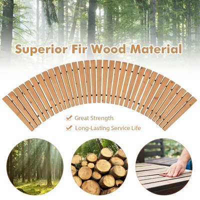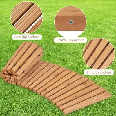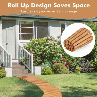 Natural color and curved structure make it a wonderful addition to gardens, yards, patios, lawns, and more. It is designed with a non-slip textured surface to prevent slipping. Moreover, all planks are connected with metal wires with plastic sheaths to withstand daily wear. The solid fir wood material also ensures overall durability and stability. Furthermore, its roll-up design ensures easy movement and storage. Not only that, but no assembly is required. It is also super easy to clean with just spraying it with a hose.
