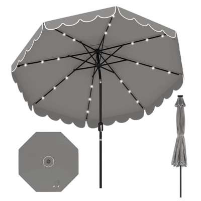 - Illuminate Your Evenings: Outfitted with 24 bright cool-white LED lights, this patio umbrella delivers magical lighting as night falls. Efficiently powered by a solar panel, these lights ensure no additional energy costs. Perfect for creating a delightful ambience on your patio or garden after sunset.