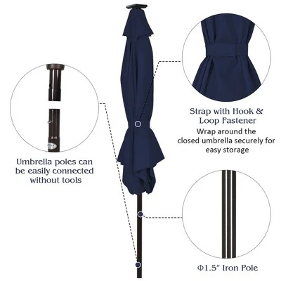 - Multi-functional Applications: Our patio umbrellas can provide shade during the day and light up the party at night. It is suitable for residential and commercial locations, as well as any outdoor area such as garden, poolside and beach. When not in use, the sewn-in hook and loop fastener straps can easily wrap the closed umbrella for storage.