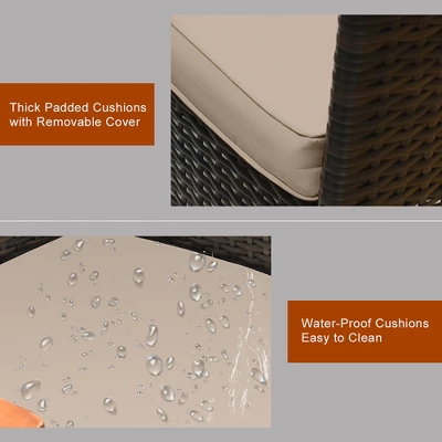 - Water-proof & Soft Padded Cushions: For adding comfort, we prepare a soft padded cushion for each chair. This cushions are made of durable non-woven fabric with waterproof coating and thick sponge, so this cushions of patio dining set are cozy and suitable for outdoor use. Besides, the cover of cushion with smooth zipper is removable and washable.