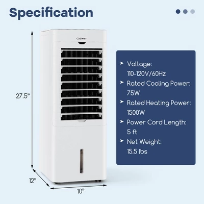 - 4-in-1 Versatile Design: This multifunctional electric heater can also be used as a regular fan (without water) or a humidifier (add water), and an air cooler (add water and ice packs), providing you year-round comfort with ease and efficiency.
