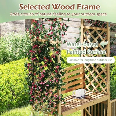- Ample Planting Space: This arc top bench trellis offers abundant planting space to satisfy your gardening needs. The top features 6 crossbars that can be used to support climbing plants, creating a lush green canopy. Besides, the 2 side planting box and climbing trellis providing more space for your plants to grow.