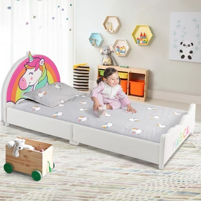 - Wide Application: Featuring cute patterns, this kids bed frame will attract your children’s attention. What’s more, you can use this bed in your bedroom to make transition time easy. When they are a little older, you can place the bed in their room to foster independence.