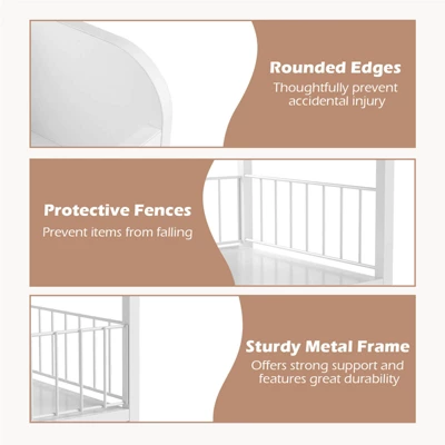 - Robust & Safe Design: With a sturdy metal frame, the cosmetics display cases holder is built to promise great strength and withstand daily use. Plus, the protective fences prevent items from falling, and the rounded edges thoughtfully prevent accidental injury.