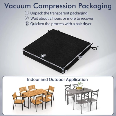 - Attention to Details: Featuring attached ties, the cushions can be securely attached to your patio furniture while easily detachable. Additionally, they adopt exquisite stitching and square corners with piped edges, providing a sophisticated and tailored look to your outdoor chairs.