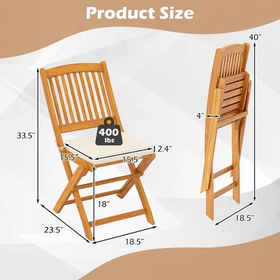 Made from premium acacia wood, these chairs feature a natural texture and robust construction, ensuring durability and elegance in any outdoor setting. The sturdy X-shaped structure and reinforced crossbars also ensure added stability. Each chair is equipped with a seat cushion secured with straps for enhanced comfort. And you can detach the cushion to enjoy breathable slatted seat. The quick-folding design allows offers more convenient for storage and carrying, making these chairs ideal for dining, camping, or relaxing in your backyard. These versatile chairs effortlessly combine functionality with stylish design, making them a must-have for any outdoor space.