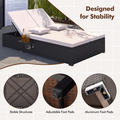 - Convenient Built-in Storage: Equipped with 2 foldable cup trays, the double chaise lounge provides accessible space for your outdoor essentials, such as drinks, books, and sunglasses. The included gas rods and buffer hinges make it easy to fold or unfold the trays.