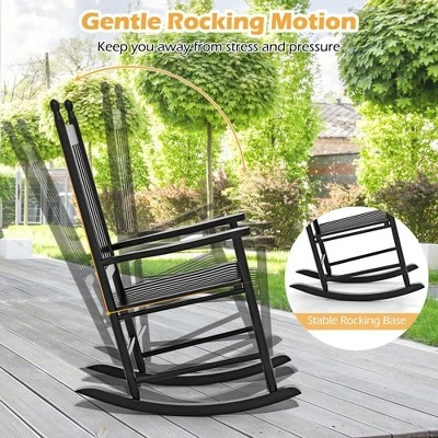- Multiple Suitable Occasions: Versatile and functional, this rocking chair is perfect for any outdoor setting from your patio to poolside or your garden retreat, providing stylish comfort wherever it’s placed. Overall dimension: 34″ x 23″ x 45″ (L x W x H)