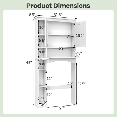 - Flexibly Fits Your Bathroom: Our 31.5″L x 8.5″W x 65″H bathroom cabinet fits neatly over most toilets, maximizing storage without crowding your room. With 2 setup options offered, you can choose to install the lower shelf on either side to suit your space.