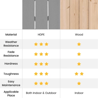 - No Fear for Outdoors: To cope with changing weather, this side table is selected HDPE material that features better weather resistance and fade resistance. Besides, its hardness and toughness are better than wood.