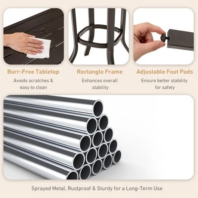 - Strong Metal Structure: Made of thick metal, the patio swivel bar set shows perfect sturdiness, reflected in each stool’s weight limit of 330 lbs. More, the patio bar set is fitted with adjustable foot pads, which adapt to different grounds while keeping the whole well-balanced.