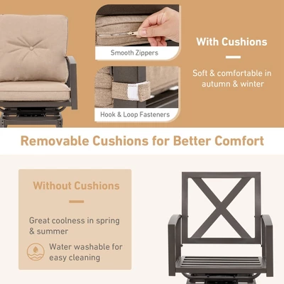 - Simple Maintenance: Exquisite workmanship ensures burr-free surfaces, making the bar set easy to clean. Plus, all cushions with hook & loop fasteners can be removed. Especially seat cushions come with zippers, allowing taking off covers for convenient water washing.