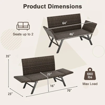 - 3-in-1 Versatile Design: This patio convertible sofa offers flexibility with adjustable armrests. You can use the couch as a 2-person loveseat to relax with your loved one, a chaise lounge chair to read books or take a sunbath, or a daybed to lie to sleep.