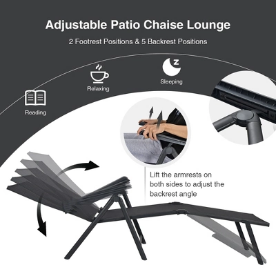- 5-Position Backrest & 2-Position Footrest: The backrest of this chaise lounge can be adjusted into 5 positions to satisfy your different demands. Just lift the armrests on both sides to adjust the backrest angle. And the footrest can also be put down at your needs. No matter you want to read books, take a relax or sleep, this chaise lounge will always be a good choice.