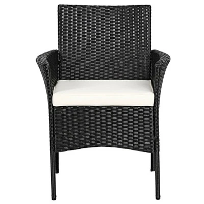 - Selected Materials: Composed of anti-rust steel frame, these outdoor armchairs increase the sturdiness and durability. Moreover, these patio dining chairs are made of exquisite PE rattan which offers a cozy touch for you. Both materials are weatherproof for outdoor use.